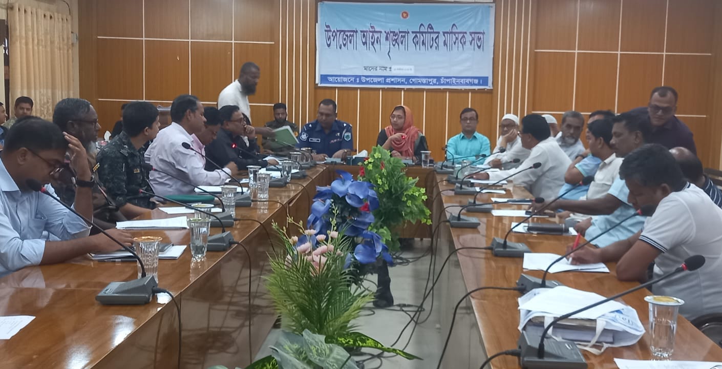 চাঁপাইনবাবগঞ্জ জেলার গোমস্তাপুর উপজেলার আইন শৃঙ্খলা কমিটির মাসিক সভা অনুষ্ঠিত হয়েছে।